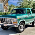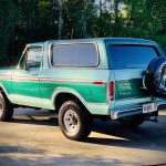It’s a light jade and dark jade two-tone that was on the Bronco from the factory in 1978. Odds are this green Bronco is the only one of the five that is still in existence. The ride was orientally sold in Holly Springs, Mississippi, and was donated to the Tupelo Auto Museum after the original owner had it for two decades.