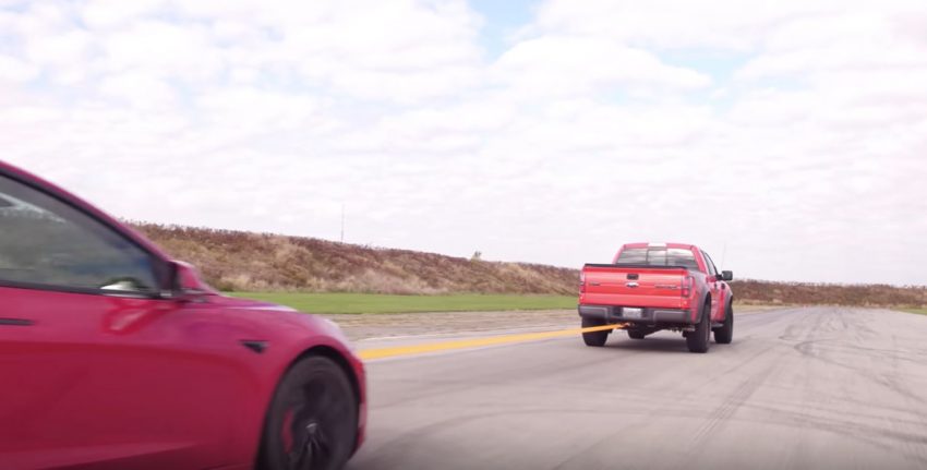 ” In the end, the guys found that it was more efficient to tow the Tesla to charge it than to drive the Raptor form A to B.” Apart from a grammar fix (form to from), they can run a different test: have the Tesla Model 3 tow the Ford Raptor after the Raptor towed the Model 3. This proves that the Model 3 may be more efficient as an electric car, but not for towing. Plan ahead to repeat the test when Ford releases the electric Raptor by 2022.