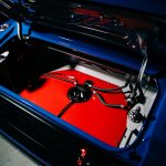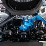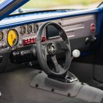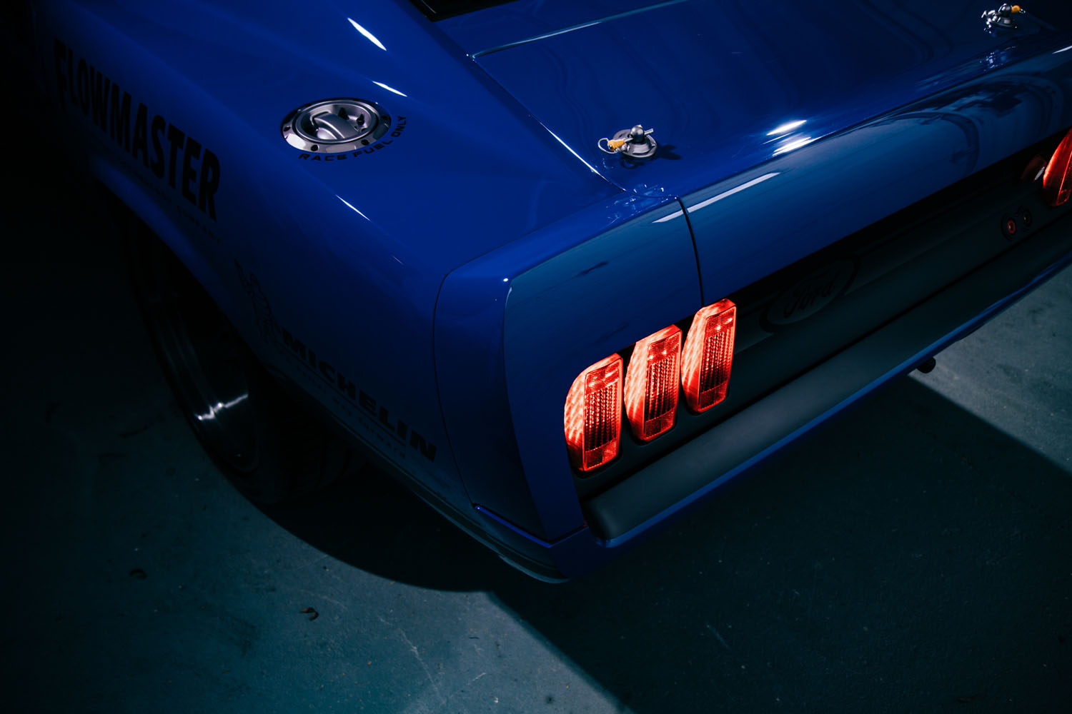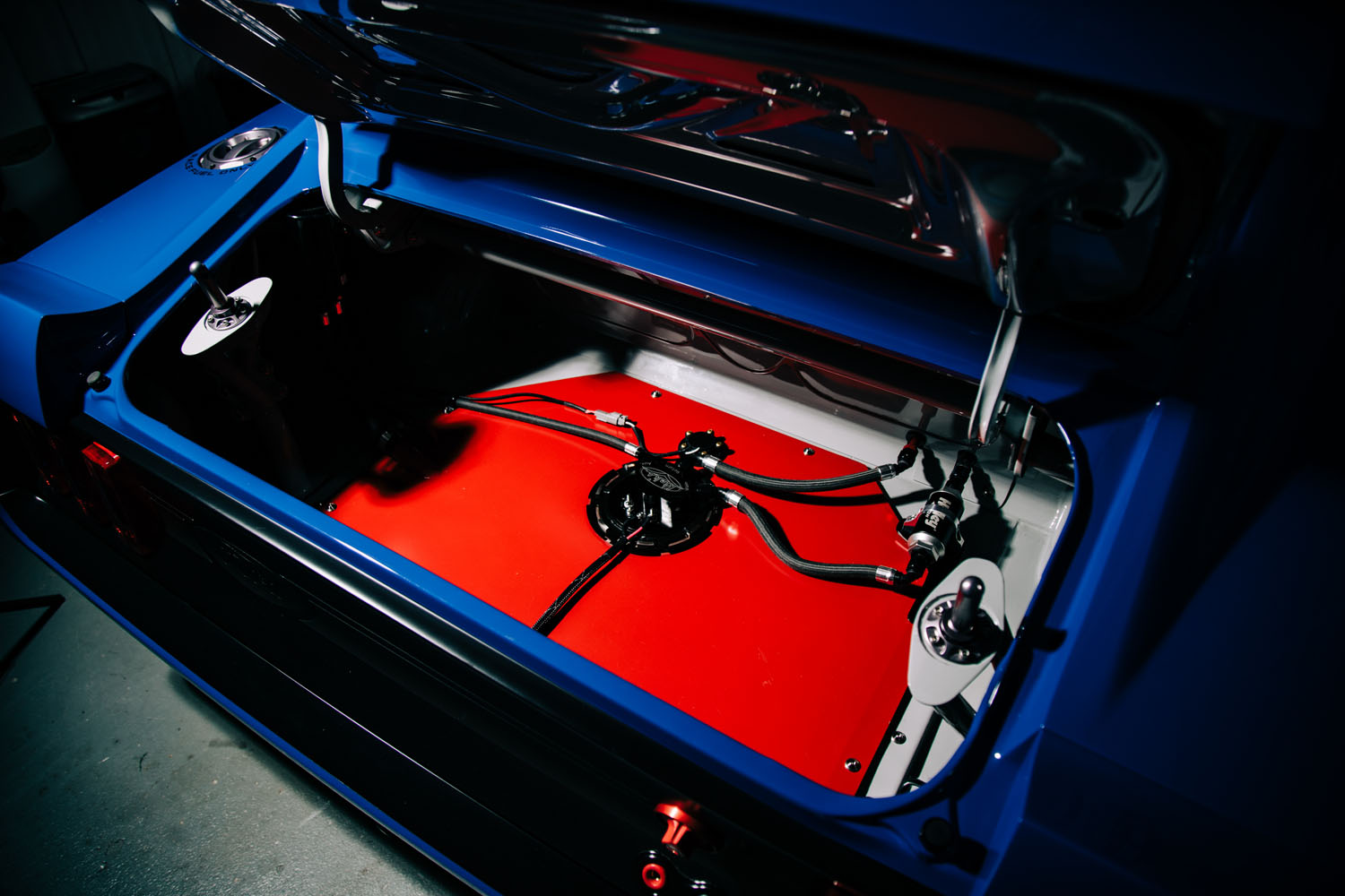The blue paint on the body of UNKL is a BASF color called Big Boss Blue. The body of the car was widened by an inch on each side to give it a more aggressive stance without giving up the looks of the classic Mustang. Ringbrothers used a mix of carbon fiber and steel panels that were tweaked by the shop. UNKL also has billet taillights, reshaped bumpers, and trim along with engine-bay accessories custom machined at Ringbrothers.