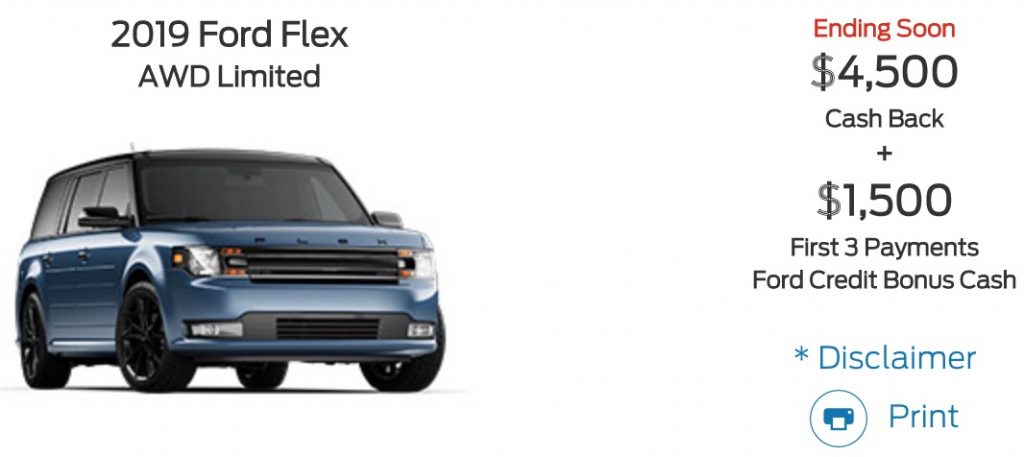 It appears that this month’s Ford Flex discount offers are meant to incentivize customers to purchase remaining Flex inventory to sell down the vehicle.