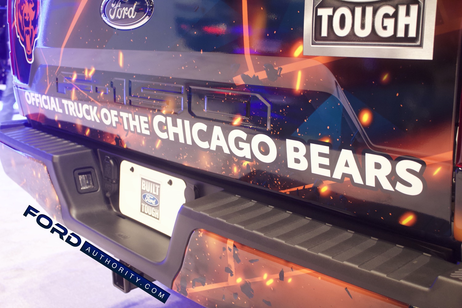 Of course, any Chicago Bears superfan wants people behind them to understand what this truck is all about, too. Thus, the tailgate features yet another Built Ford Tough logo, along with more “official truck” lettering, and a smaller Bears logo. The finishing touch is a traditional Bears logo emblazoned on the rear window for added effect.