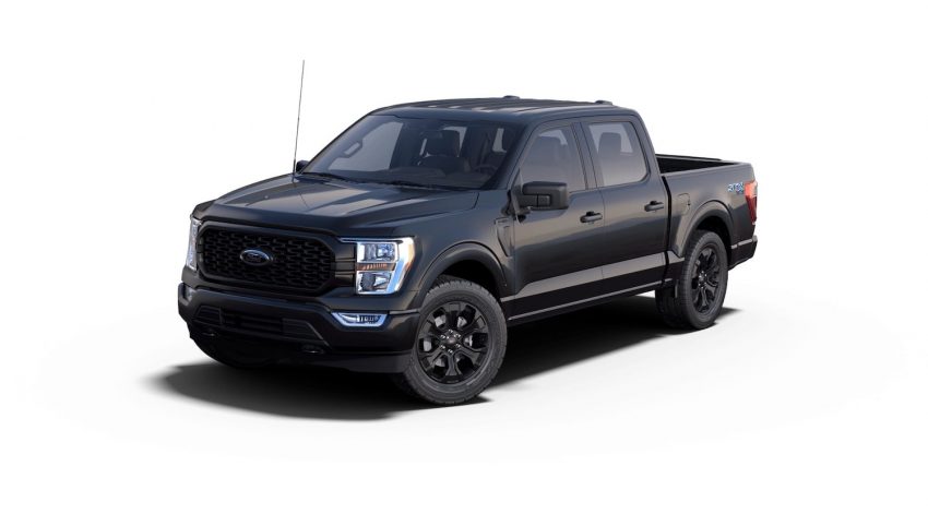 In addition to dual exhaust, the STX Appearance Package also adds a host of additional features and equipment including 20-inch gloss black-painted aluminum wheels, body-color front and rear bumpers, a box side decal (except when paired with the FX4 Off-Road Package), black bodyside decals (4×4 and FX4 Off-Road Package only), black exterior badging, fog lamps, a molded-in color black honeycomb-style front grille with a body-color surround, and a matte black F-150 decal on the tailgate.