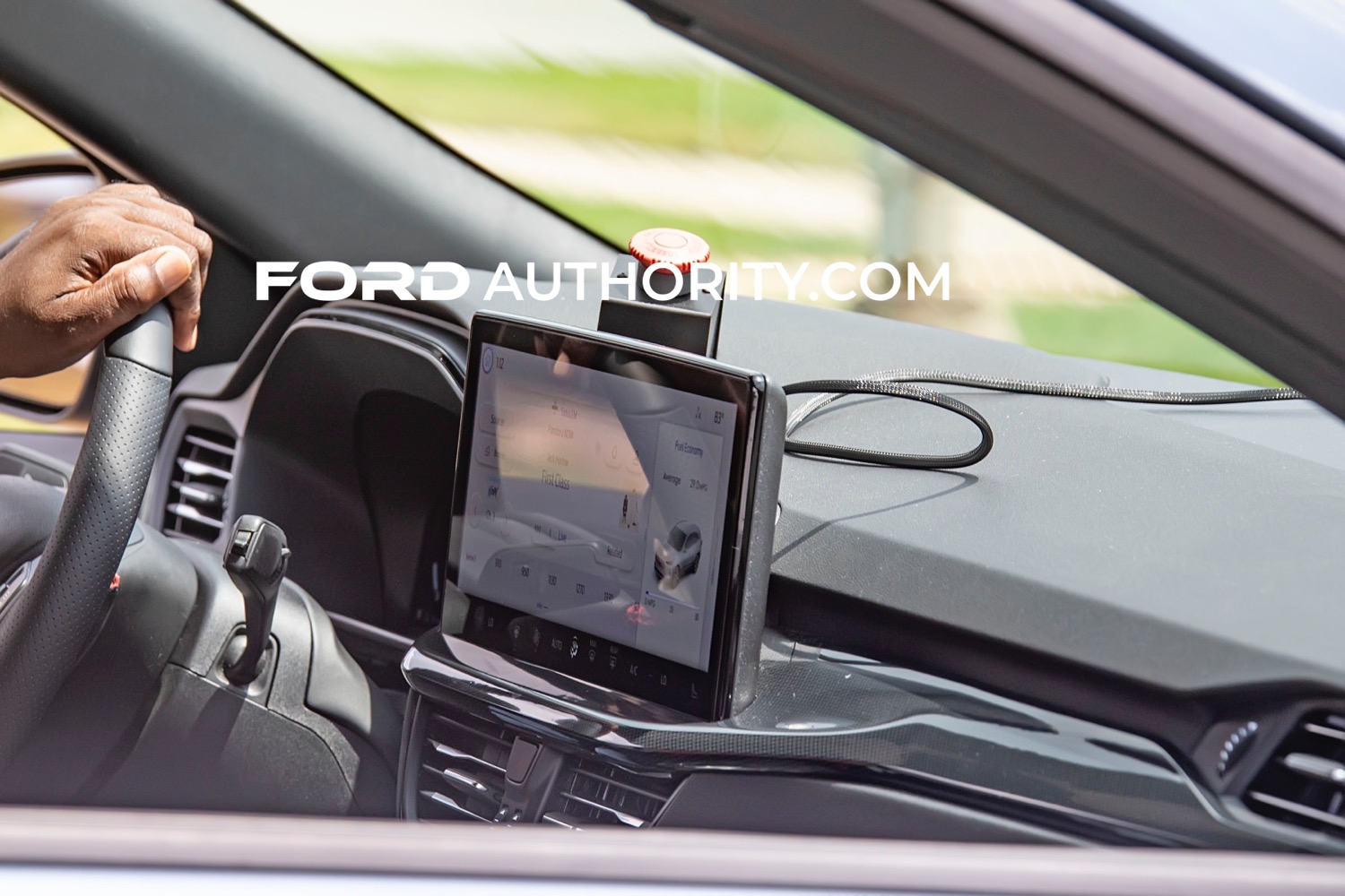 To date, Ford Authority spies have spotted multiple 2023 Ford Escape prototypes driving around wearing various states of disguise, with the most recent pair of sightings consisting of two totally uncovered ST-Line models, and earlier today, a camo-free Active model. Aside from some exterior updates, the refreshed Escape will also tout an updated interior design with a large touchscreen, as Ford Authority reported last November, and now, our spies have captured photos of the refreshed 2023 Ford Escape interior that show off the new screen, as well as some other features.
