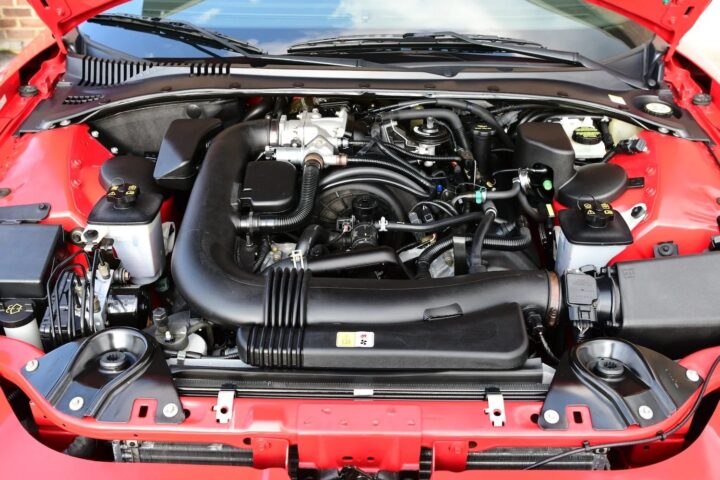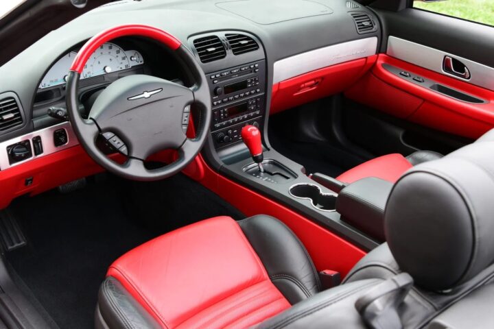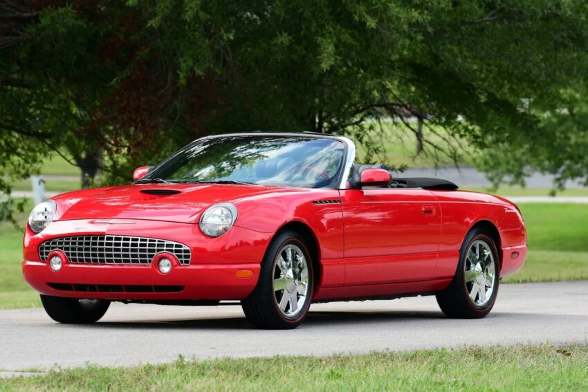 This 2002 Ford Thunderbird is up for auction at Bring a Trailer with just 4,900 miles on the clock, and it looks no worse for wear as a result. This T-Bird is finished in Torch Red paint with a matching removable hardtop, as well as a power-operated Midnight Black convertible soft top. It rolls on the original set of 17-inch seven-spoke chrome Premium wheels, which are currently wrapped with 235/50 Michelin Pilot HX MXM4 red-line tires.