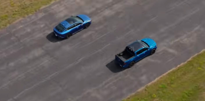Fresh off its victory against the Kia K4, the 2025 Ford Maverick Lobo is thrown on track against the Mazda3. While they’re fairly evenly matched, the Maverick Lobo experiences its first loss, falling in behind the Mazda3. From a standing start, the Maverick Lobo lags, although it does start to cut the distance once it has some momentum behind it. However, it runs out of time to pass the Mazda3, and loses to the sedan once again.