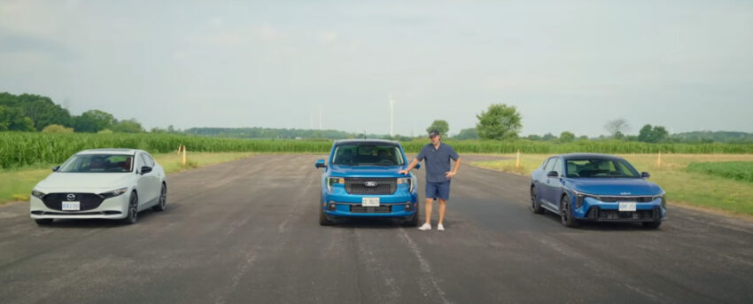 The 2025 Ford Maverick Lobo hit the compact pickup scene with one goal: to revive the street truck craze of the mid-’80s. The high-performance Maverick has thus far proved itself a formidable competitor, prompting YouTuber Sam CarLegion to throw it on track against a Mazda3 Turbo and Kia K4 GTLine, just to see if the sporty compact pickup can keep up with the herd.