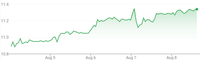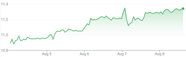 08/08/2025 | $11.30 | $11.32 | $11.37 | $11.21 |