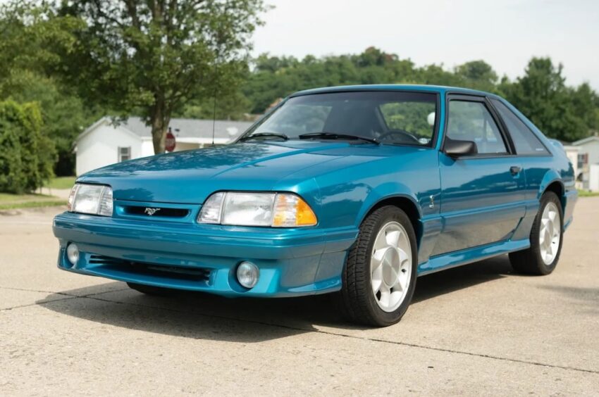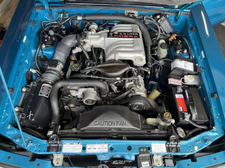 Helping that cause is the fact that this Ford Mustang SVT Cobra is finished in the beloved hue known as Teal Metallic, but its Carfax report also shows damage reports in December 1993 and July 1994 – though no additional information was provided. It rolls on the original turbine-style 17-inch aluminum wheels, currently wrapped with a set of older Goodyear Eagle tires.