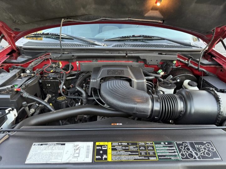 Inside, one will find an equally clean Dark Graphite cloth interior with amenities such as air conditioning, a CD stereo, and power windows and locks. Power comes from the naturally-aspirated Ford 5.4L V8, which in this guise was factory-rated to produce 260 horsepower and 350 pound-feet of torque, and it’s mated to a four-speed automatic transmission driving either the rear or all four wheels.