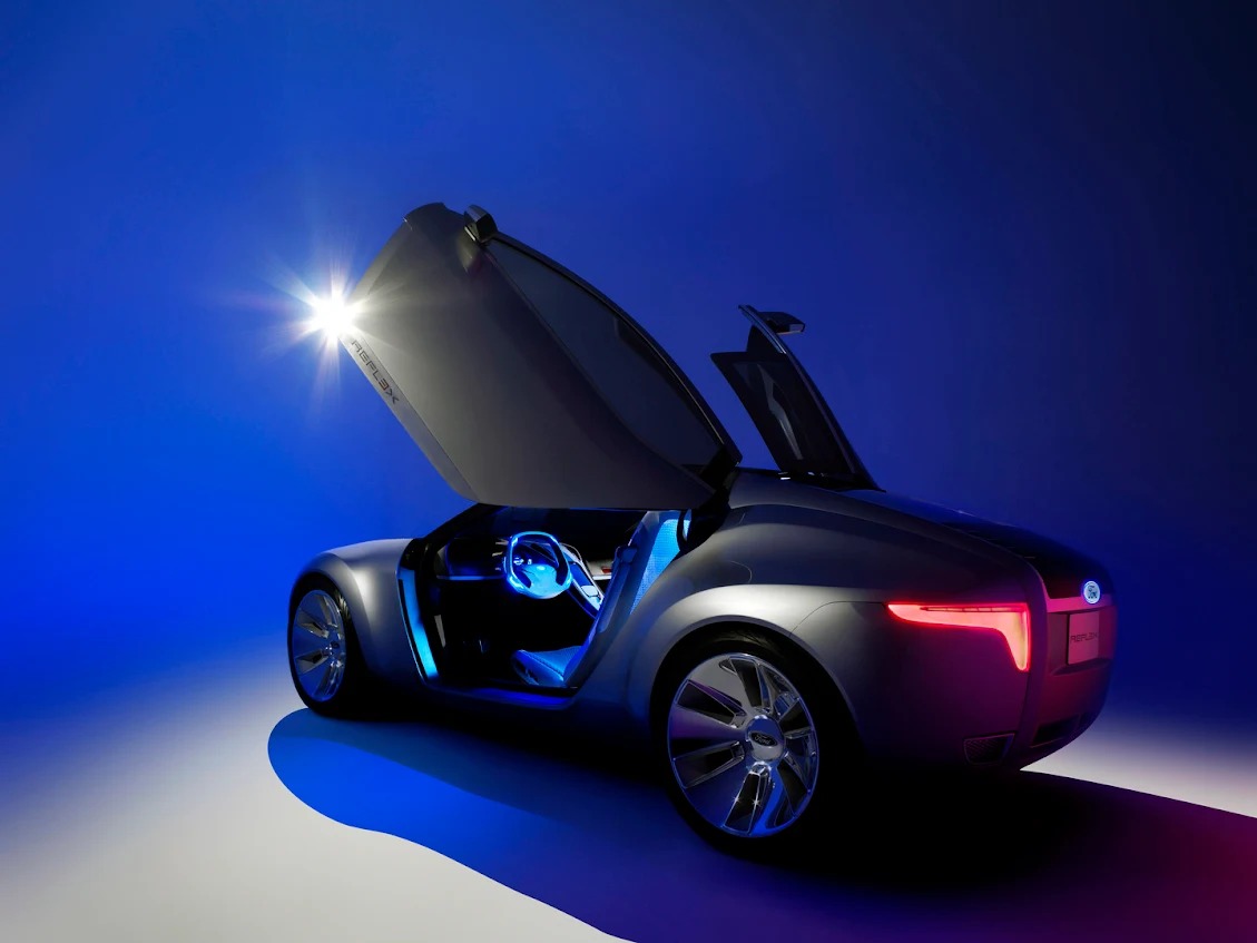 Outside, the 2006 Ford Reflex boasted an expression dominated by the iconic three-bar Ford grille. Reverse butterfly doors made ingress and egress as easy as possible, while its low-voltage circuitry was not hidden, but shown off on its glass roof as a functional design element. Its 20-inch wheels were made of polished alloy, and its specially designed tires helped it achieve that 65 mpg efficiency rating.