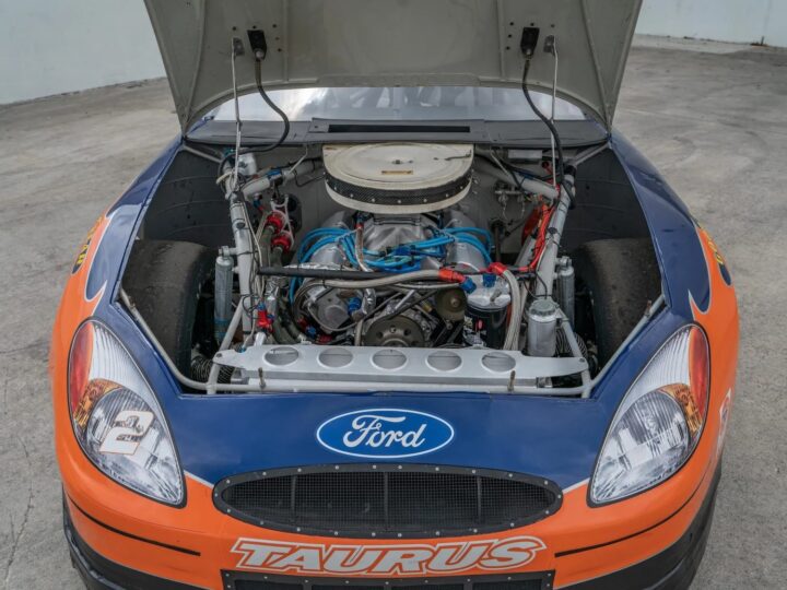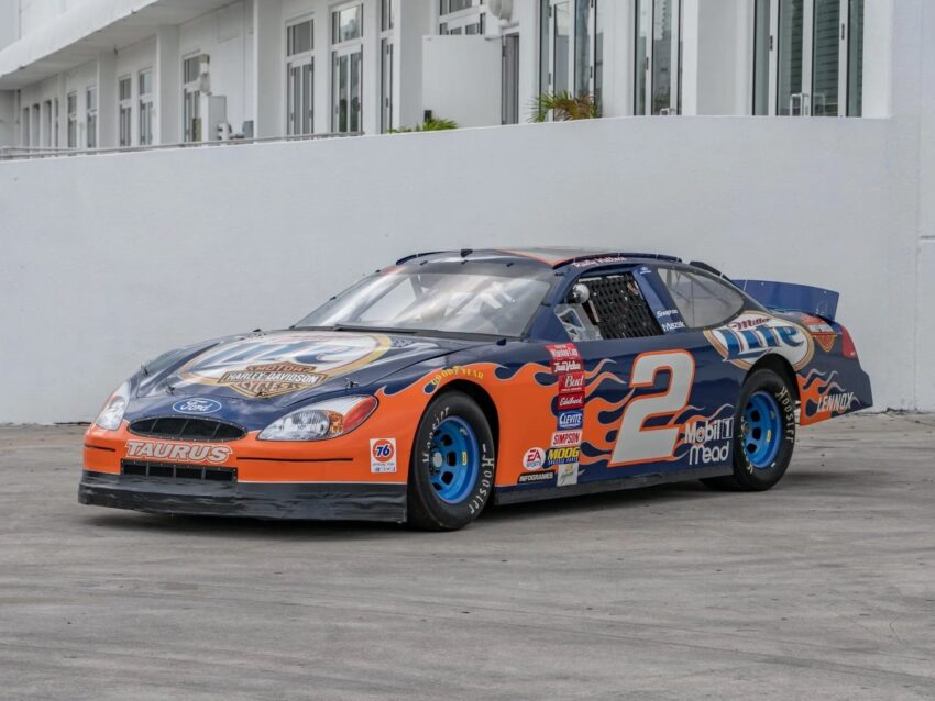 This particular Ford Taurus NASCAR racer is up for auction at Bring a Trailer, and it’s a real-deal machine that bears the chassis number PRS-025. Otherwise known as “Mad Max” by Penske Motorsports, which built the car, this Taurus had quite a lot of success in its competitive career, lasting between 2000-2002. Over that time span, Wallace piloted the Ford Taurus to wins at Michigan International Speedway in 2000 and California Speedway in 2001, as well as four top-five finishes and 10 top-10 finishes. After the 2002 season, it was retired and sold, then modified for road course use.