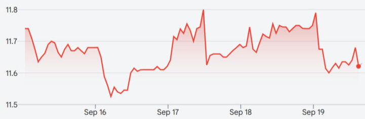 09/16/2025 | $11.69 | $11.61 | $11.78 | $11.51 |