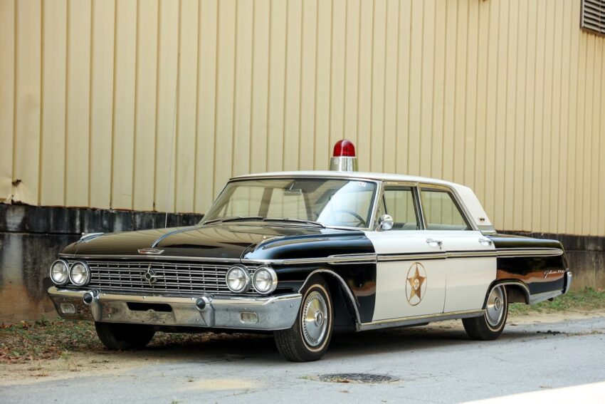 This 1962 Ford Galaxie is up for auction over at Hagerty after it was converted into a tribute to the police cruiser starring in The Andy Griffith Show, used to patrol the fictional town of Mayberry, North Carolina. It features traditional black and white paint with police department logos on the doors, along with a light on the roof, but otherwise, this is a pretty normal looking example of the classic sedan. It rolls on a set of steel wheels fitted with covers and wrapped with Winston Californian I P205/75R14 whitewall tires.