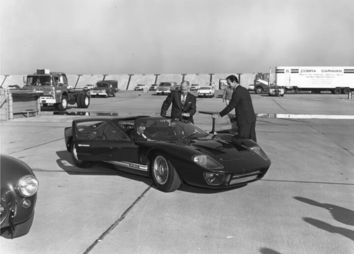 Once this Ford GT40 arrived at its doorstep, Shelby American discovered that some nose damage had occurred during transit, but it immediately used the car in a promo photo shoot with Carroll Shelby himself, regardless. That damage was promptly repaired, and the special machine was present at various auto shows after that. Shelby American parted ways with the G40 in 1968, and it was leased to MGM Studios, driven by Bob Bondurant for camera test laps in preparation for filming of the movie “Grand Prix.”
