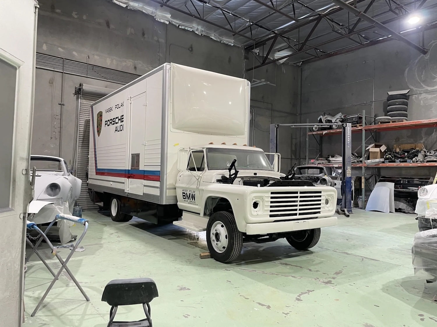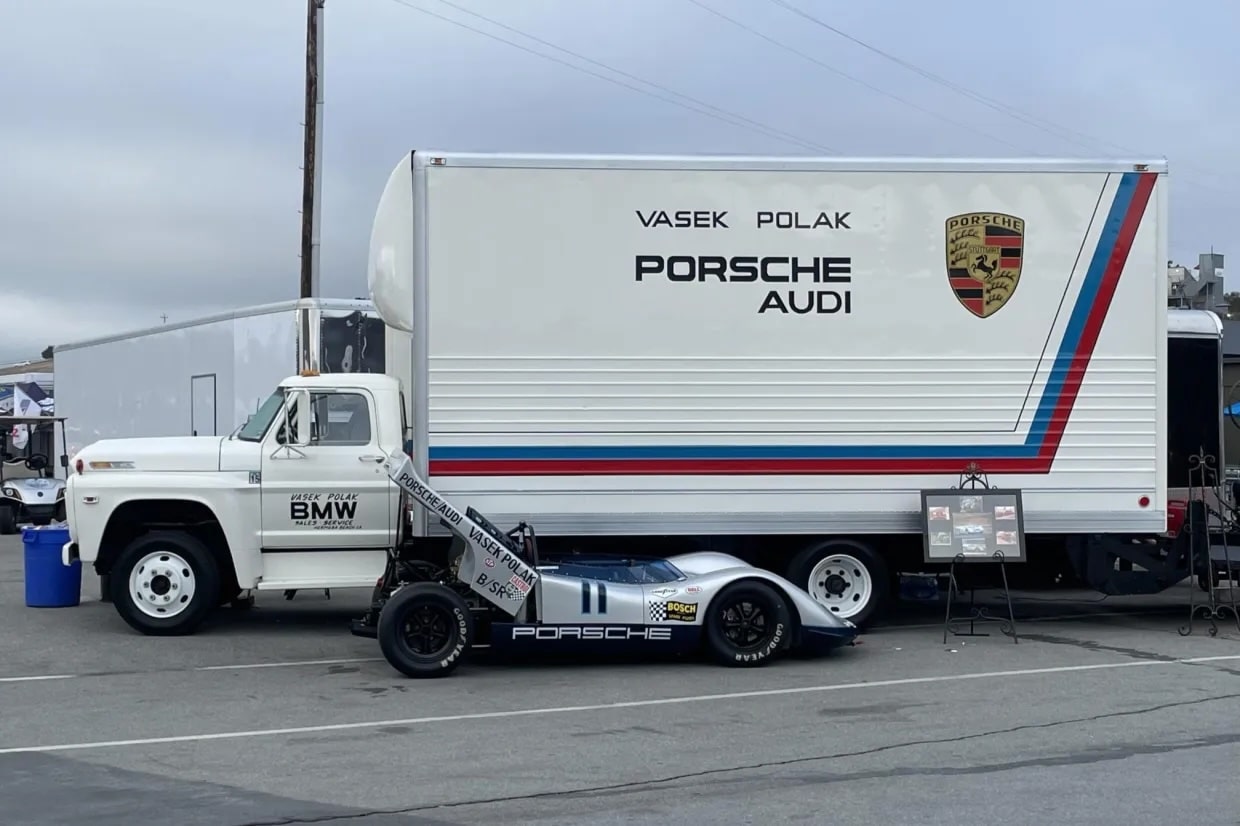 This 1970 Ford F-600 car hauler is currently up for grabs at Bring a Trailer, and it's being sold along with a custom Porsche racer built using various components from a real-deal 1966 906 that was converted to Spyder form in 1970 and subsequently raced in some SCCA events by Vasek Polak. It was just completed in 2023, after which it placed second in its class at the La Jolla Concours d’Elegance and first at The Quail, A Motorsports Gathering in 2024.