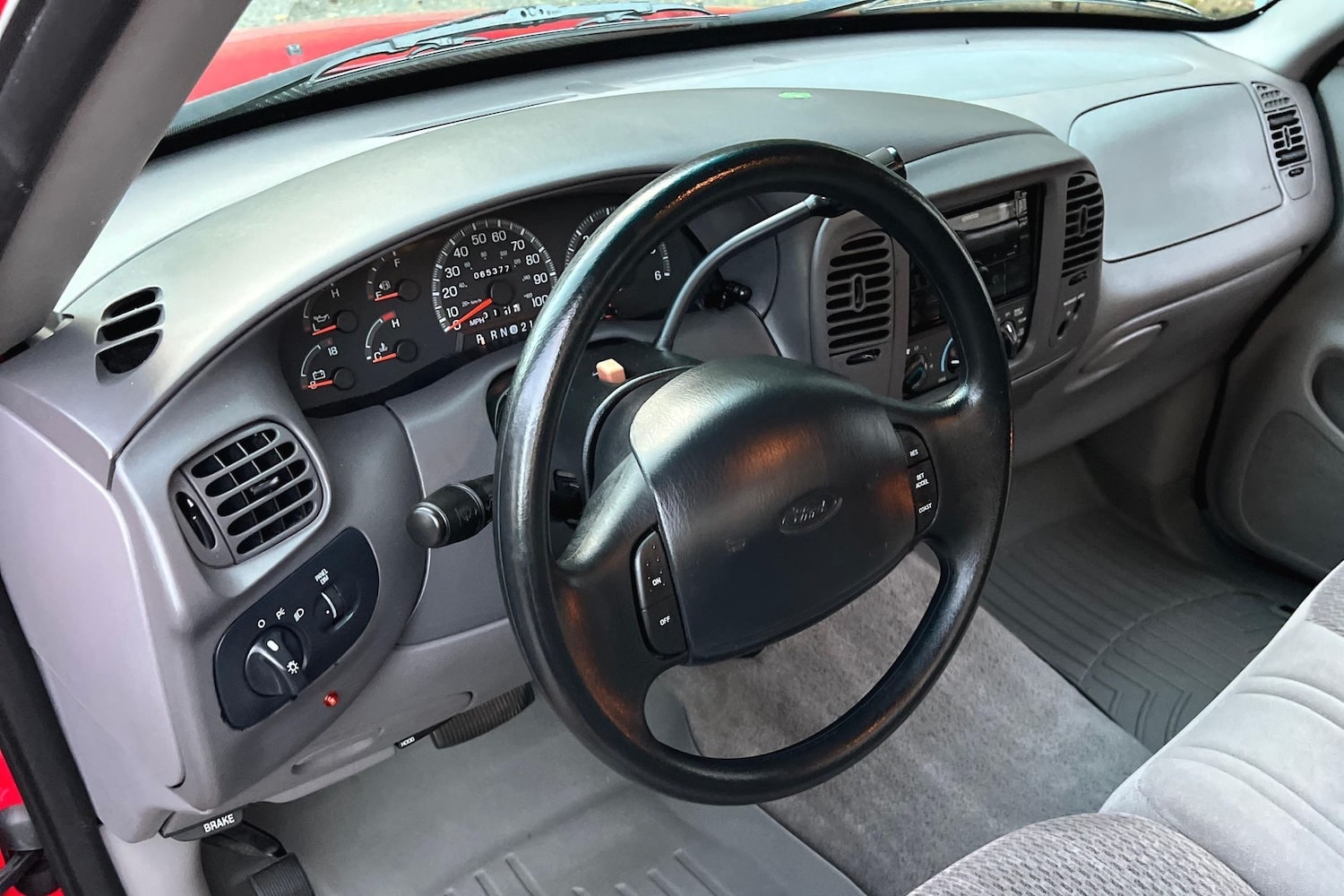 This 1997 Ford F-150 is up for auction at Cars and Bids with around 65k miles on the clock, leaving it in pretty nice shape. It's finished in Bright Red with the typical chips, dents, and blemishes marring the exterior, and the passenger side hub cover is missing, but otherwise, this pickup is in good condition. It's also equipped with a body kit that's rather period correct, though it's an aftermarket addition with fender flares and side steps.