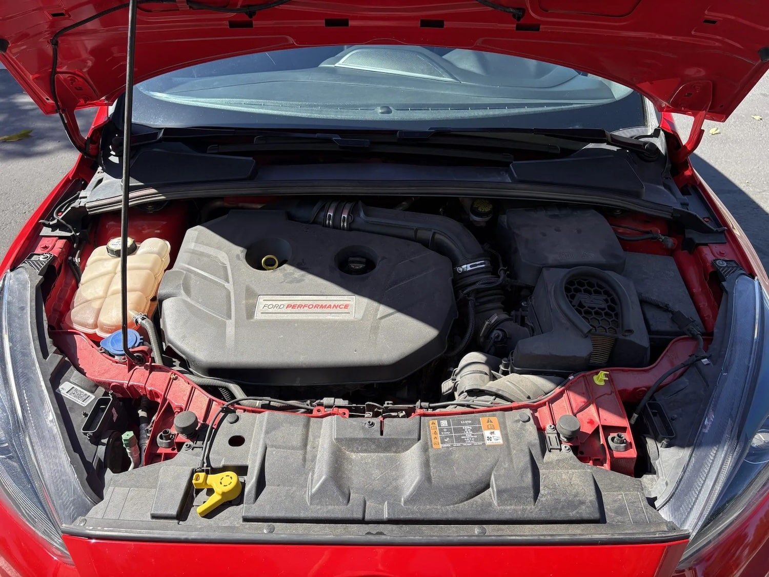 Inside, one will find Charcoal Black leather and Miko Dinamica microsuede covered Recaro front bucket seats with embroidered RS emblems in the backrests, plus features such as dual-zone automatic climate control, cruise control, a power-adjustable driver’s seat, SYNC 3, a CD stereo, and an aftermarket short-throw shifter.