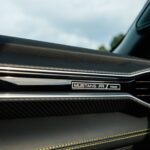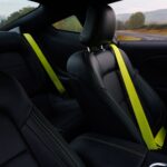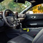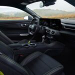 Inside the cabin, the 2026 Ford Mustang RTR package features Hyper Lime accents. The dash, center console, and door pockets are shot through with bright green stitching, along with the drift brake lever (which can be foregone for no cost should buyers not want that option). Beyond that, the bundle adds illuminated RTR door sill plates, RTR-specific graphics to be shown on the display screens, and a serialized dash plaque.