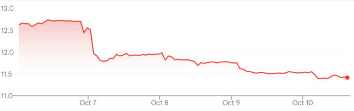 10/08/2025 | $11.74 | $11.98 | $12.01 | $11.68 |