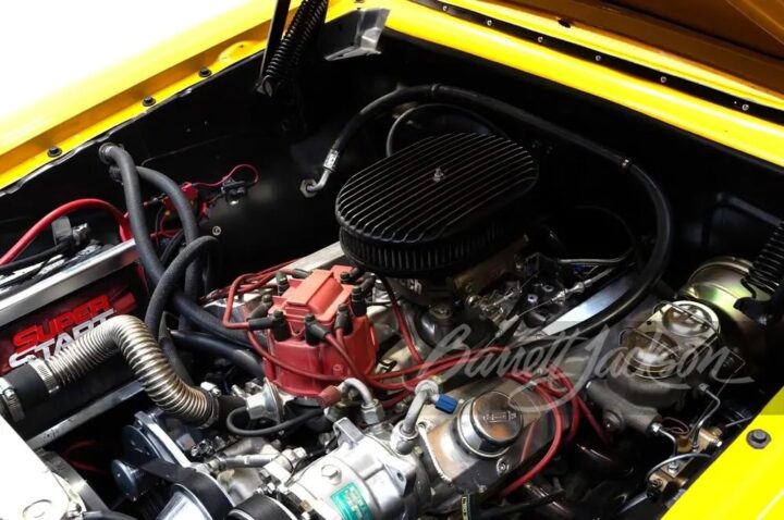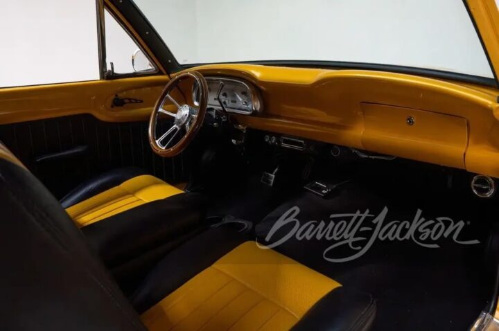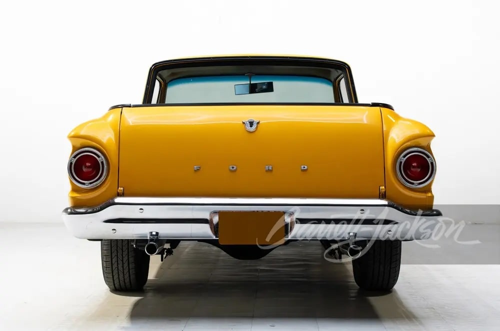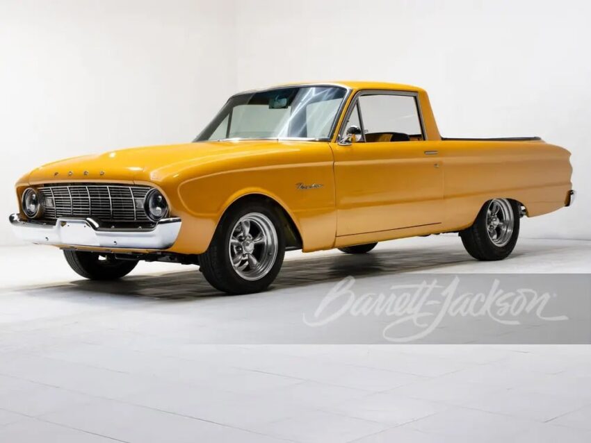 This 1960 Ford Ranchero is scheduled to cross the block at Barrett-Jackson’s Fall Scottsdale auction later this month, but it’s far from stock in every conceivable way. It’s been treated to a full-blown frame-off redo, in fact, which includes bodywork and a fresh yellow paint job, plus the addition of things like LED headlights, flush-mounted door handles, new chrome, fresh glass, new seals, and a Raptor-lined bed on the outside.