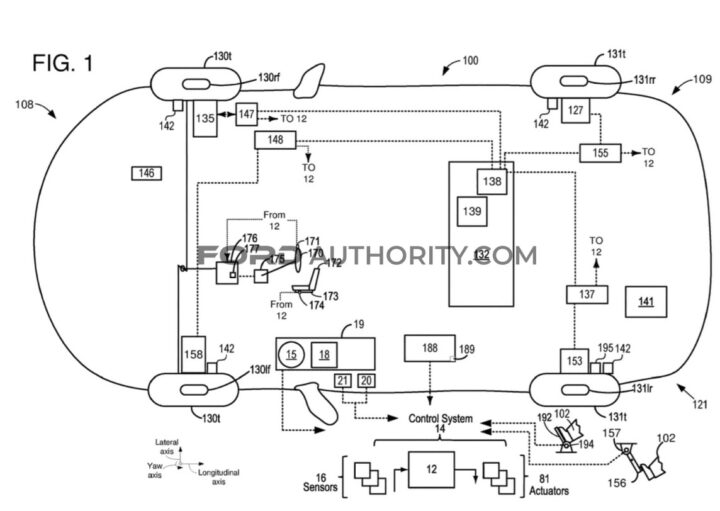 As Ford points out in this patent, EVs are quite a bit quieter than ICE vehicles, which isn’t always a good thing. Rather, in certainly situations such as off-roading, there are times when it may be more difficult to adjust throttle input to prevent wheel slippage from occurring, given the fact that we can’t hear an EV’s motor in quite the same way as the revs from an ICE engine.