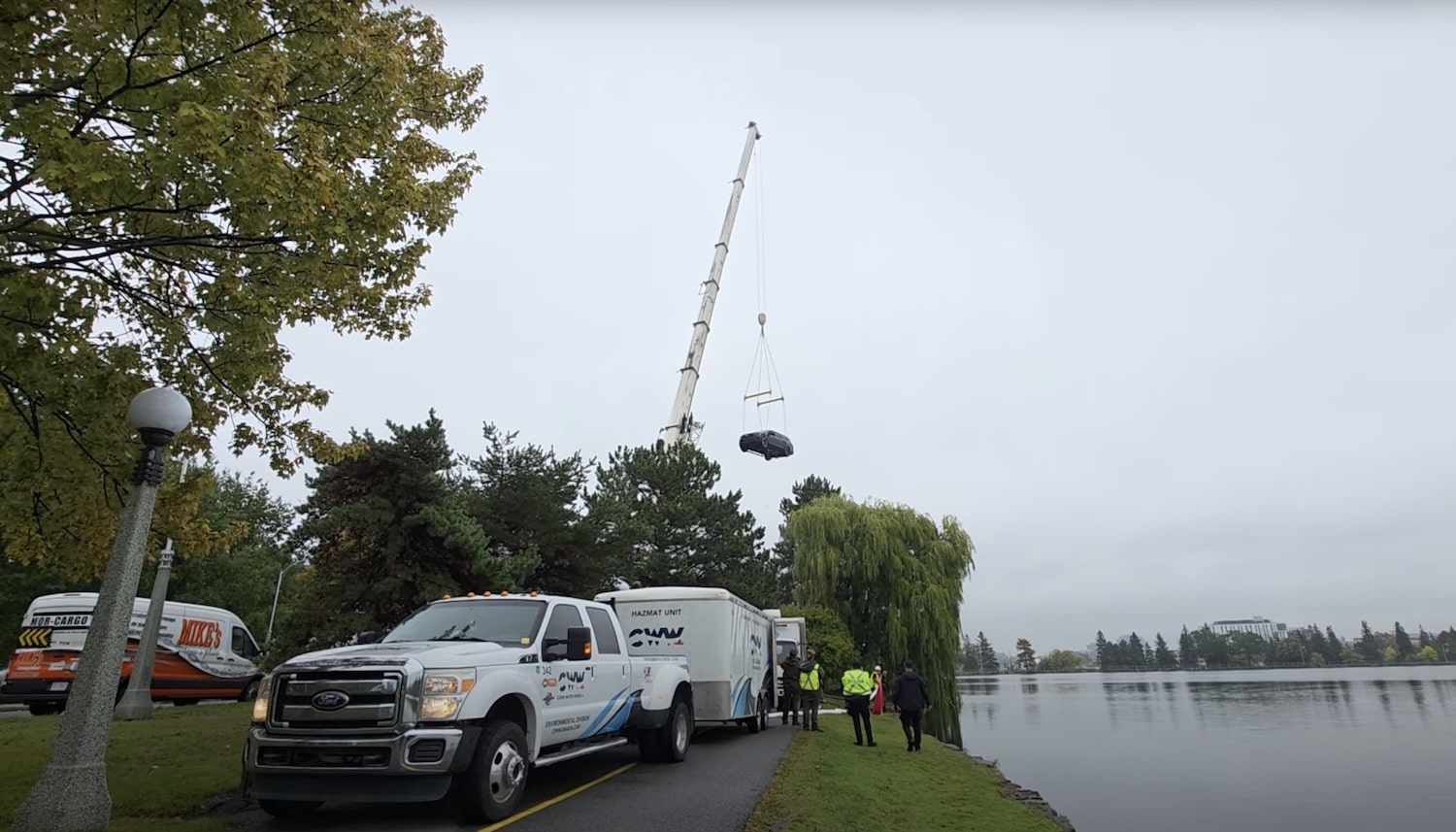 What we can see is this Ford Expedition being rescued from the lake, a job that required a crane to pull off. The large crane lifted the SUV out of the water and subsequently placed it on a flat bed truck, but now, it’s unclear what will become of the poor vehicle. Though it looks no worse for wear, water has a way of wreaking havoc on a vehicle’s electronics, likely leaving this one destined for the scrap yard.