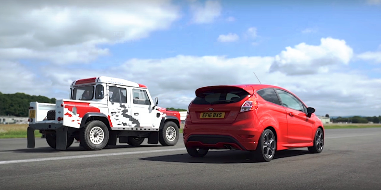 The folks at Top Gear just answered a question few - if any - have ever bothered asking: Is a Ford Fiesta ST faster in a straight line than a Bowler Defender rally truck?