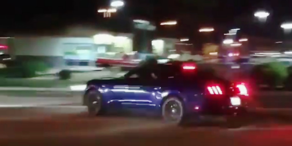 Hello, my name is Raegan crazy to see this already exploding on the internet but I just want to clear up that all these people claiming the video is theirs or they were the ones filming is getting on my nerves. I really was the one filming the two mustang owners are my friends and i decided to film them leave, or at least attempt to. Id really like these other names to be taken off and have my name put in for the video credit, I mean I did almost die that night. If you have any questions about making sure it really is me i do have video prof please edit the names or email me back.