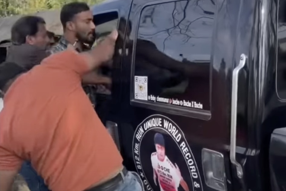 As we can see in the video, many got out of their vehicles and began pounding on the truck with their hands, with another even attempting to climb up and grab the driver. Several people climbed in the bed as well, while a group of folks were seen yelling at the driver in an attempt to get him to move the massive rig, to no avail. Clearly, it isn’t a good look for the well-known businessman, but then again, it might just help him gain traction on social media and turn out to be yet another successful marketing stunt.