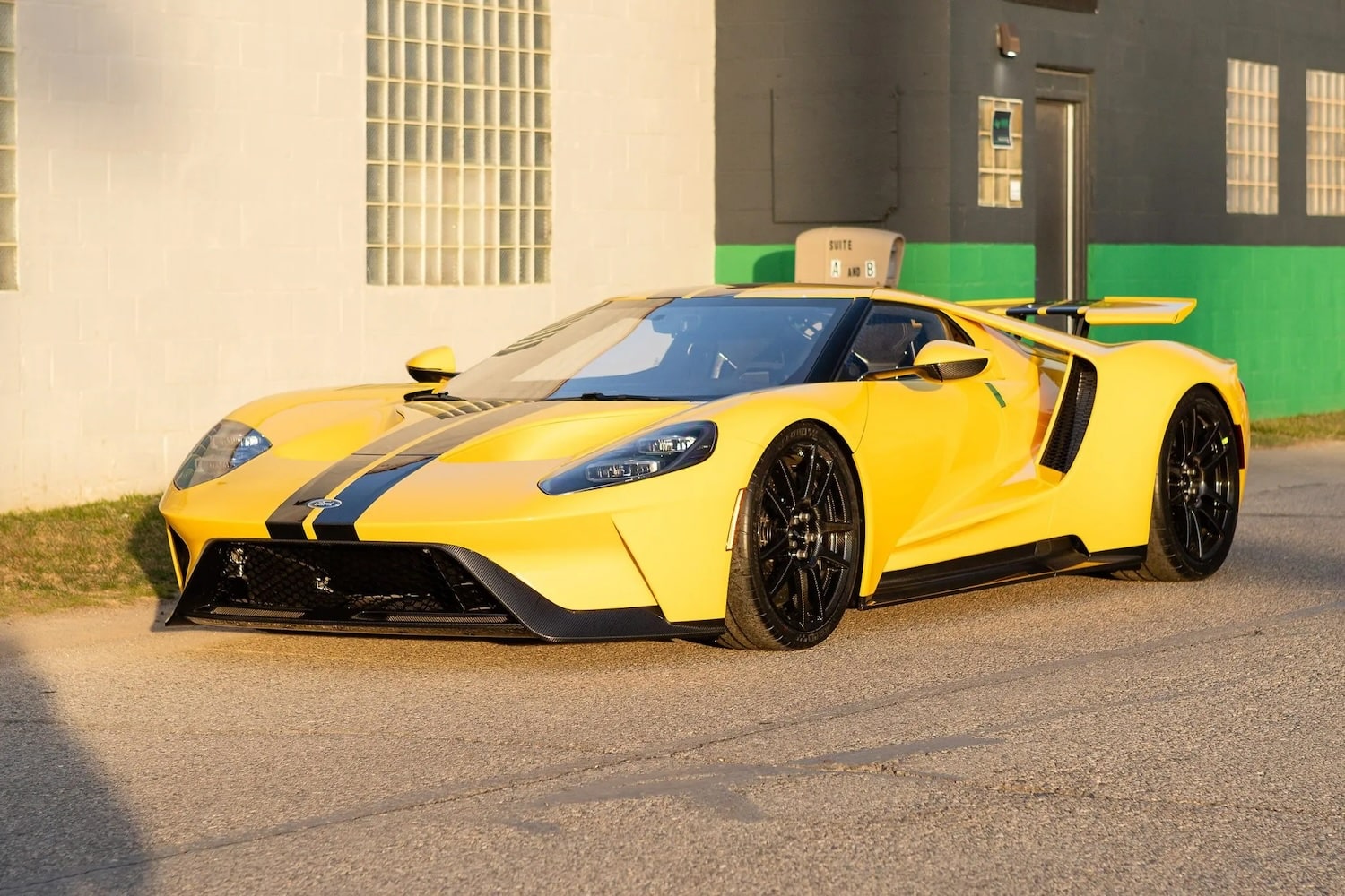 This 2021 Ford GT Carbon Series has a mere 15 miles showing on the odometer and was purchased new by the seller at Gene Butman Ford in Ypsilanti, Michigan. It’s finished in Triple Yellow Tri-Coat and is equipped with the Exterior Carbon Fiber and Carbon Graphics packages, which helped shave around 40 pounds of weight thanks to features including exposed carbon-fiber stripes, titanium lug nuts, gloss carbon-fiber wheels, and a polycarbonate engine cover with increased ventilation.