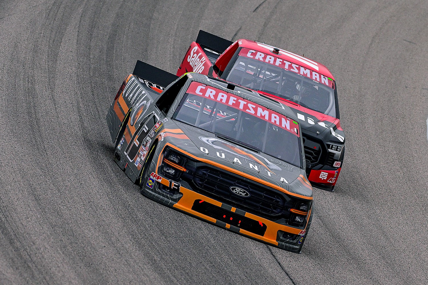 Up front, Corey Heim, driver of the No. 11 Toyota TRD Tundra, led the No. 91 Chevy Silverado RST across the line to win.