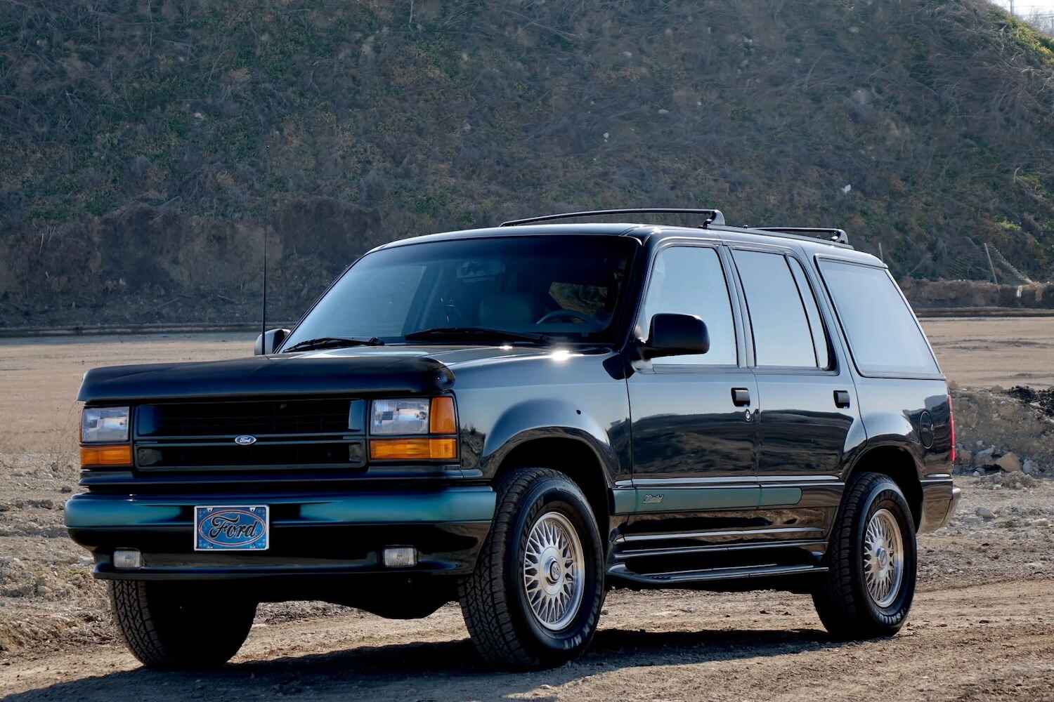 This 1994 Ford Explorer Limited has just 51k miles showing on the odometer, and is up for grabs over at Bring a Trailer. It spent a whopping 31 years in Oregon with one owner before the SUV was acquired by the selling dealer this year, and it certainly looks like that person took great care of it. The vintage Ford Explorer sports seemingly perfect Dark Tourmaline Metallic paint, in fact, along with features such as running boards, a roof rack, fog lights, and 15-inch split-spoke alloy wheels on the outside.