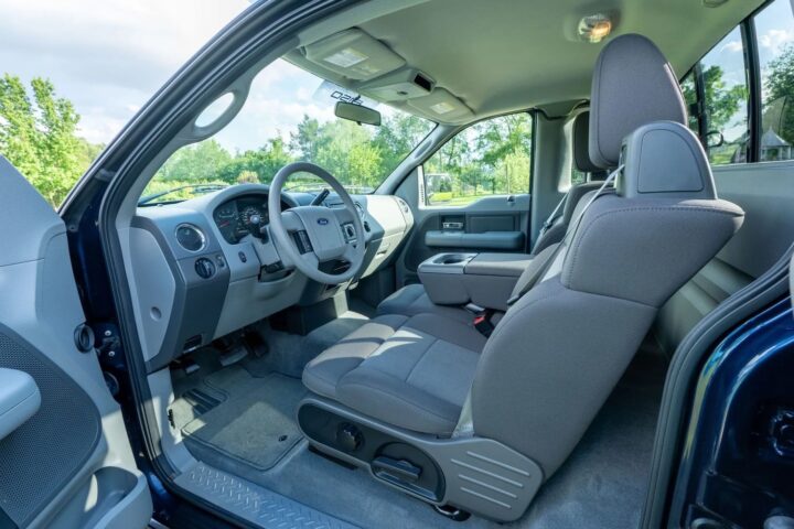 Regardless, the long bed, regular cab pickup remains in great shape, with flawless True Blue Metallic paint, chrome wheels, and General Ameritrac TR tires on the outside. Inside the cabin, one will find Medium Flint and Dark Flint cloth upholstery, air conditioning, power-adjustable pedals, power windows, and a CD stereo.