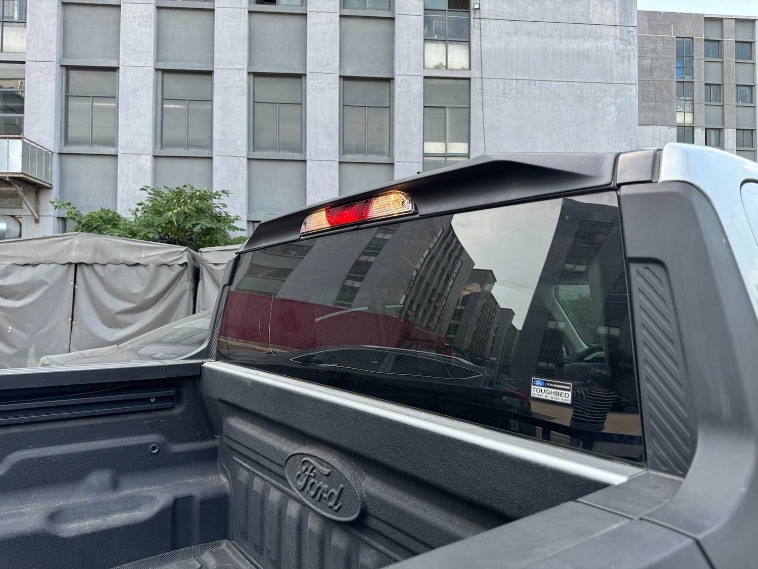 I came close to checking all the boxes and spent a few bucks, Hood Scoop, side moldings, window visors, Tailgate appliqué, and cab spoiler from the Ford parts catalog. As the truck is silver, all the trim is black, so the accessories in black give it a good look.