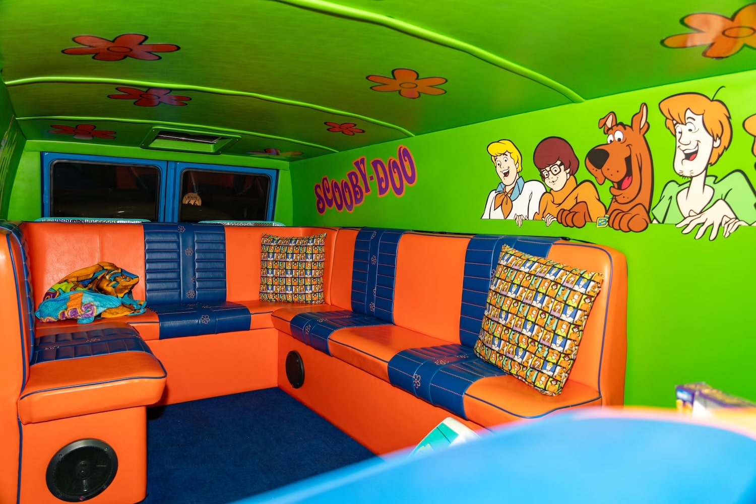 During that process, the body was refinished in blue paint with green panels and floral accents, just like the Mystery Machine we all grew up admiring, along with a custom see-through decal on the rear window showing off some familiar Scooby Doo characters. It rolls on a set of Chrome Vision five-spoke wheels, wrapped with Cooper Cobra white-letter tires, too