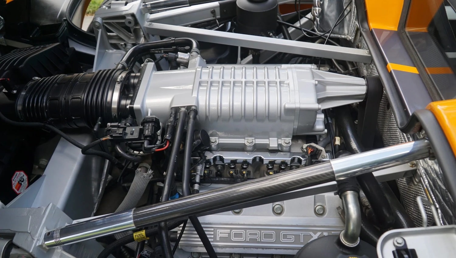 Power for this special machine comes from the same supercharged Ford 5.4L V8 as GT models of this generation, but this one has been treated to a Lysholm screw-type supercharger, a dry-sump lubrication system, a Genaddi Design exhaust system, and a water-to-air intercooler, helping it churn out around 700 horsepower. It’s mated to a Ricardo six-speed manual transaxle and a helical limited-slip differential, sending power to the rear wheels.