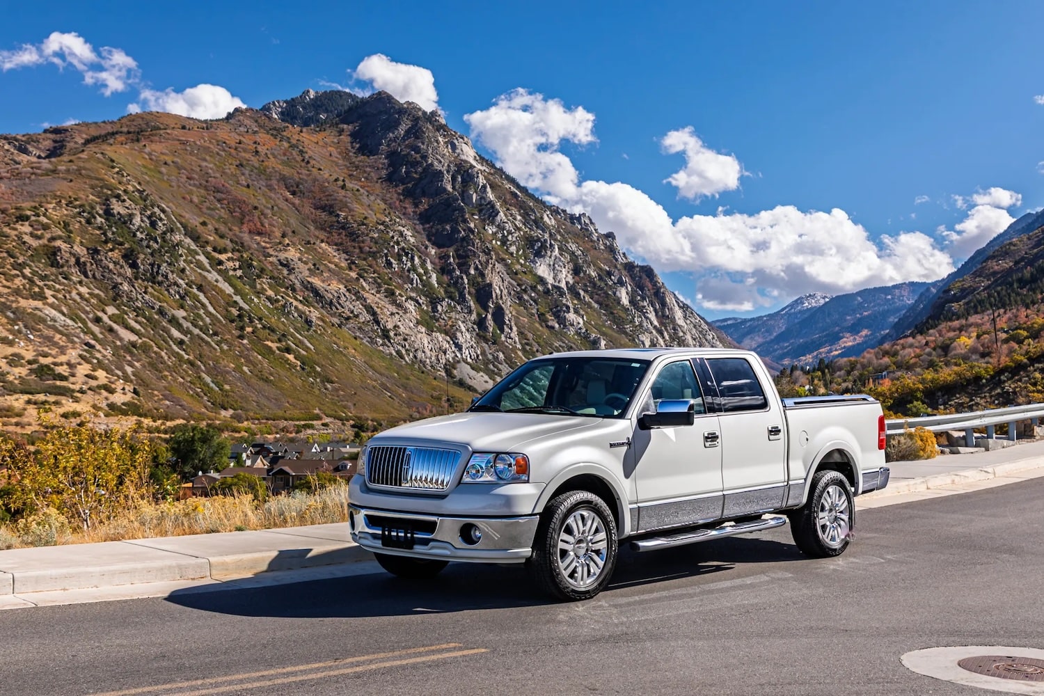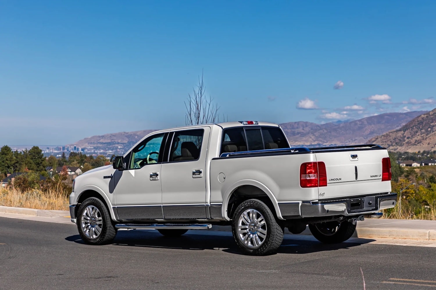 This 2006 Lincoln Mark LT is currently being auctioned off at Bring a Trailer, and it has just 8k miles showing on the odometer, which is quite low for a vehicle of this vintage - especially a truck. As such, it remains in fantastic condition, with seemingly perfect Ceramic White paint and copious amounts of chrome covering the front grille, bumpers, step bars, door handles, lower cladding, and box rails. This Mark LT still rolls on its original 20-inch polished aluminum wheels wrapped with 275/55 Pirelli Scorpion ATR tires, which look to be in great shape, too.