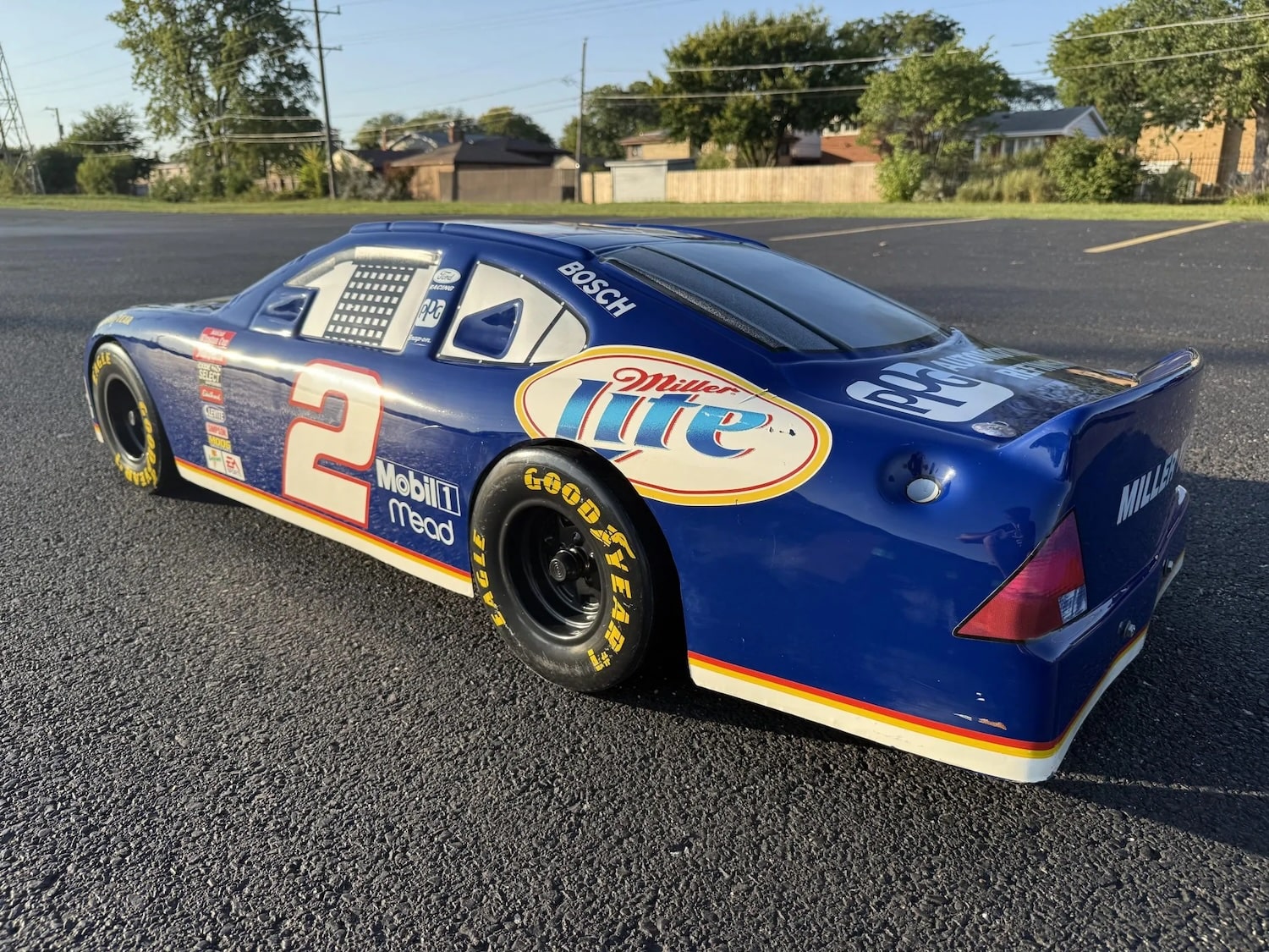 This Ford Taurus NASCAR racer display model up for auction at Bring a Trailer looks a heck of a lot like the real thing, at least, in photos, but it’s actually not a drivable vehicle. Rather, it was made from plastic, designed to look like the Miller Lite #2 Ford Taurus NASCAR racer driven by Rusty Wallace back in the 1990s. Whoever created it certainly did a good job, because the model looks quite realistic, featuring a period livery along with plenty of other features.