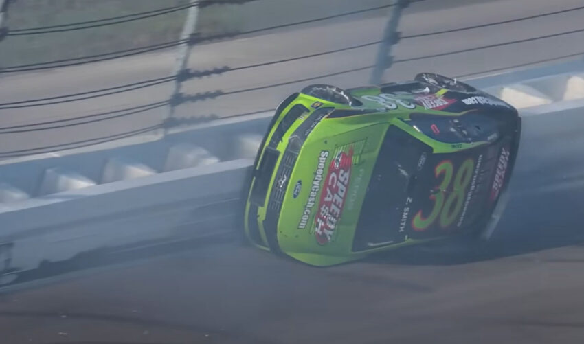 According to a report from NASCAR.com, Zane Smith was behind the wheel of the No. 38 NASCAR Ford Mustang when it tipped onto its side after contact with a competitor. Squeezed against the barrier, Smith's race car wound up driver's side down, skidding along the wall for several hundred feet before it finally separated from the wall and rolled before coming to a rest on all four wheels. Smith was able to exit the race car under his own power, but was understandably shaken after the wild ride.