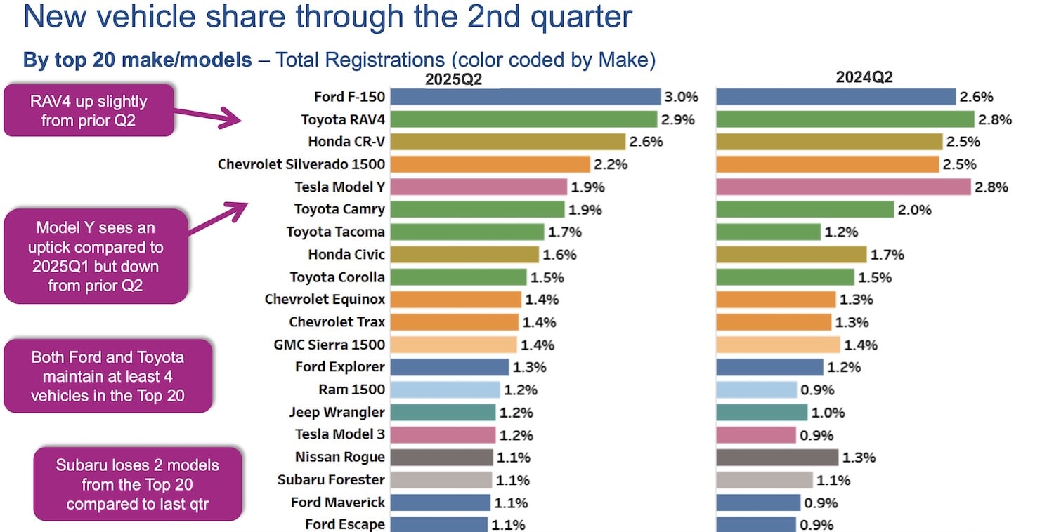 As Ford Authority previously reported, the Ford F-150 also ranked first in the second quarter of 2025 in terms of its presence on U.S. roads, regardless of model year. It accounted for 3.7 percent of all vehicles on U.S. roads in the past quarter, which was more than any other model. The Silverado 1500 came in second at 2.7 percent, followed by the Toyota Camry (2.3 percent), Honda Accord (2.0 percent), and Honda CR-V (2.0 percent) rounding out the top five.